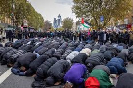 Worryingly, 9.7% of respondents did not identify with the UK at all, equating to what the ONS optimistically defines as “only” 5.8 million respondents. The largest areas with people who do not identify with Britain are Birmingham, Newham, Manchester and Brent. Tower Hamlets is a good example of colonisation where the largest ethnic group is Asian (44.4%), the largest religious group is Muslim (40.0%) and a full 26.5% do not identify with the UK. The photo shows people praying on a road in Tower Hamlets in October 2025, this is a deliberate show of strength since Islamic guidance tells believers to worship inside Mosques wherever possible. This is certainly possible in Tower Hamlets and this event is therefore staged for the cameras.