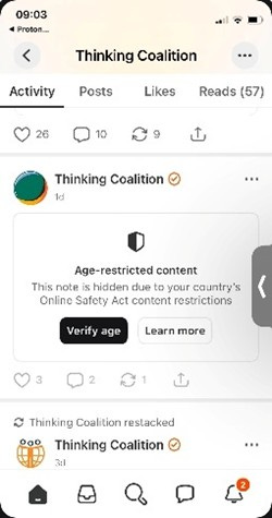 In line with Substack’s requirement to act transparently, we would be interested to know how it was that our content, or parts of our content, came to be identified as age restricted. Was this determination made by algorithms, what key words or phrases were searched for in order to achieve this determination given the fact that none of our accounts include bad language, indecent images or anything remotely resembling adult content. We believe that regulated service providers are required under the OSA to provide transparency on such matters.